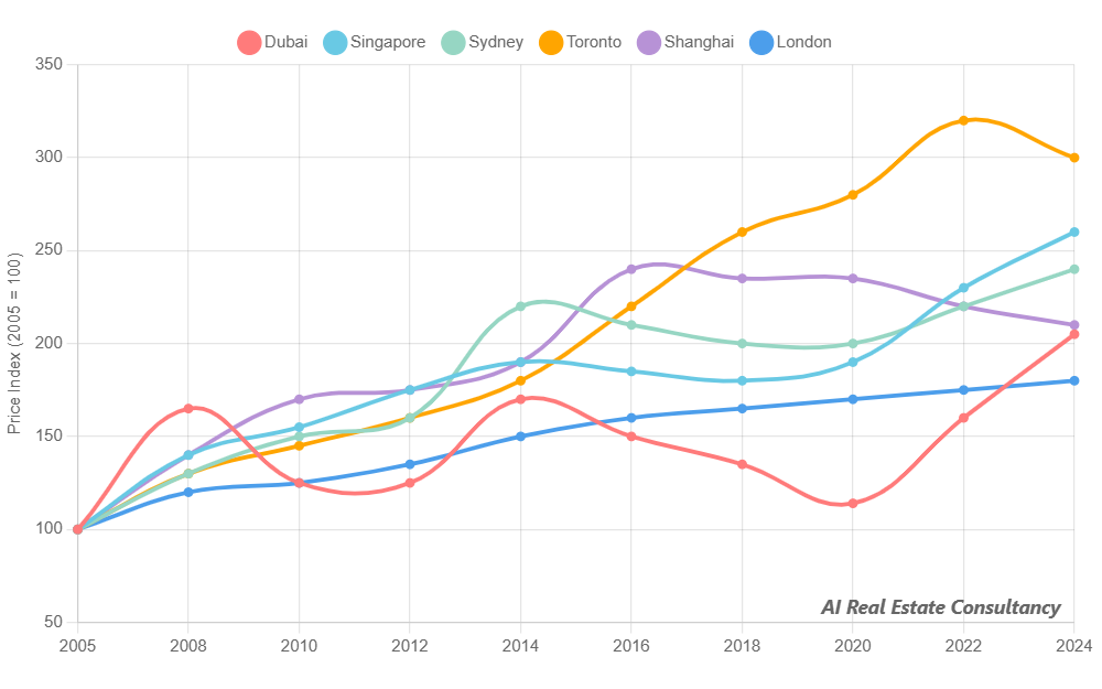 Le segment “trophy assets” à Dubaï est attractif mais cyclique. Les prix sont sensibles aux variations de demande internationale, aux flux de capitaux étrangers et aux politiques locales. (voir plus bas)